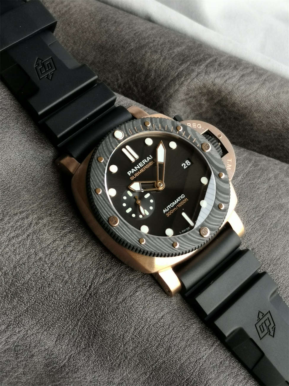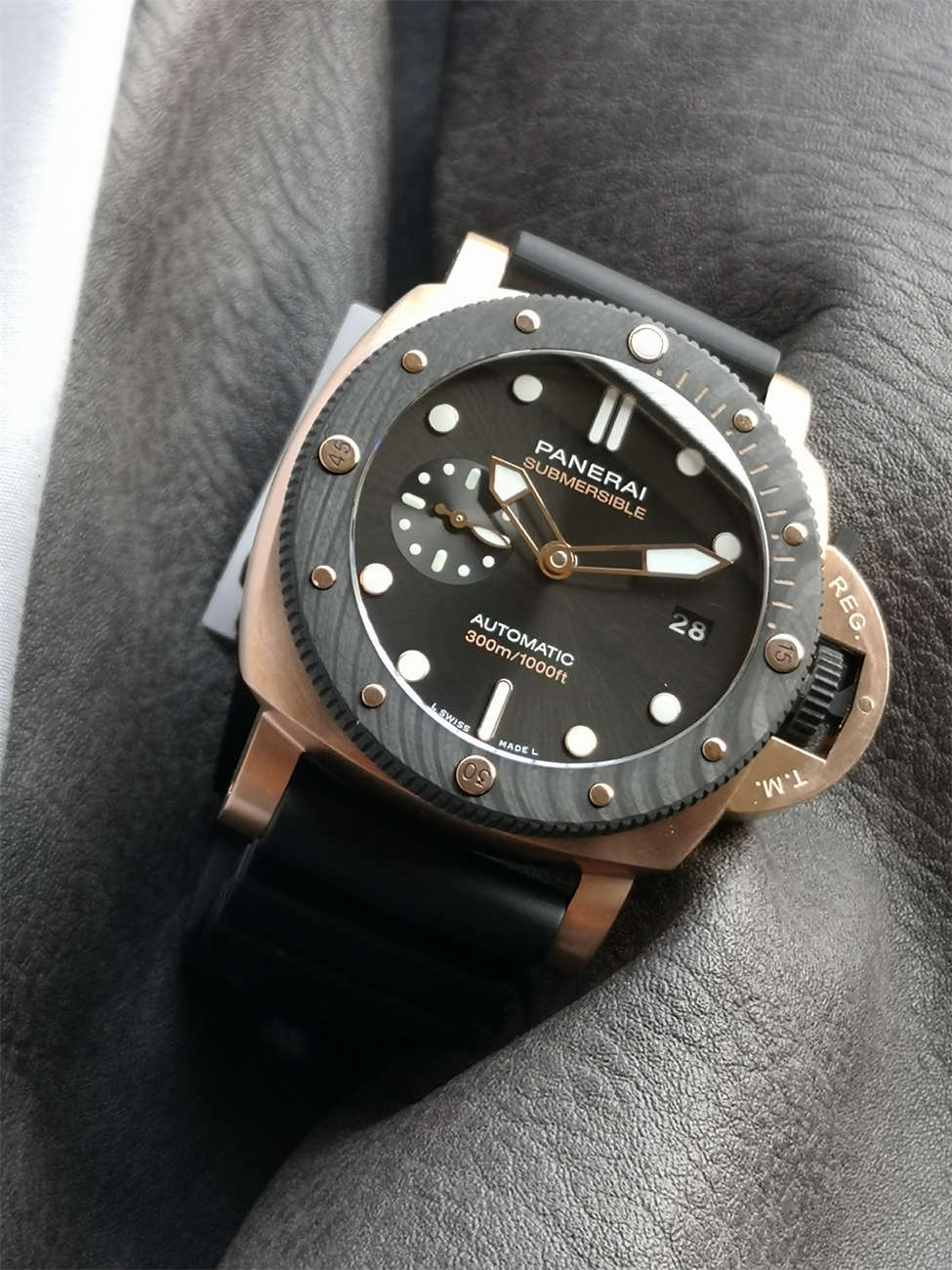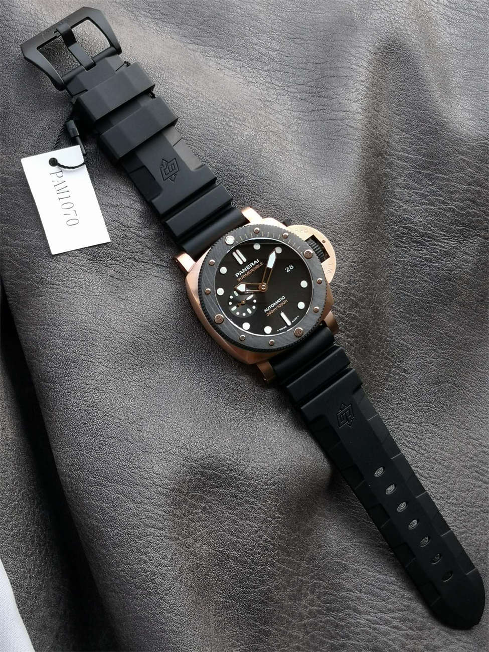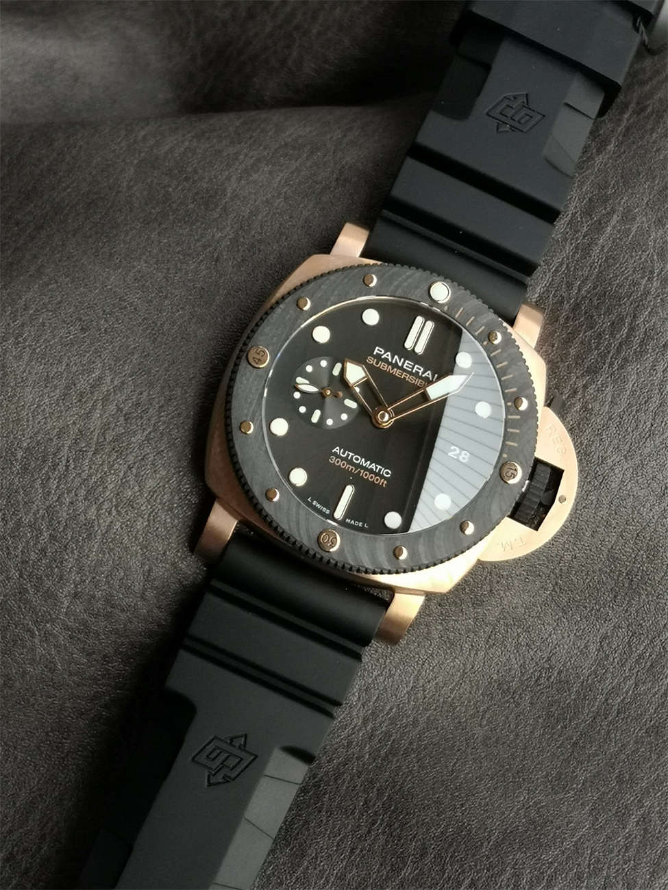 The Panerai Submersible PAM1070 is a striking watch. It mixes the warmth of Goldtech™ (Panerai’s proprietary red gold alloy) with the high-tech aggression of Carbotech™. VS Factory (VSF), known as the king of Panerai replicas, has perfectly captured this contrast. The result is a VSF Panerai PAM1070 Replica that looks like a $30,000 heavy-hitter on the wrist.