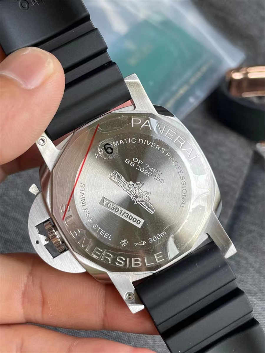 The strong lume and functional design reinforce the professional diver feel of this replica, while maintaining a timeless Panerai vibe.