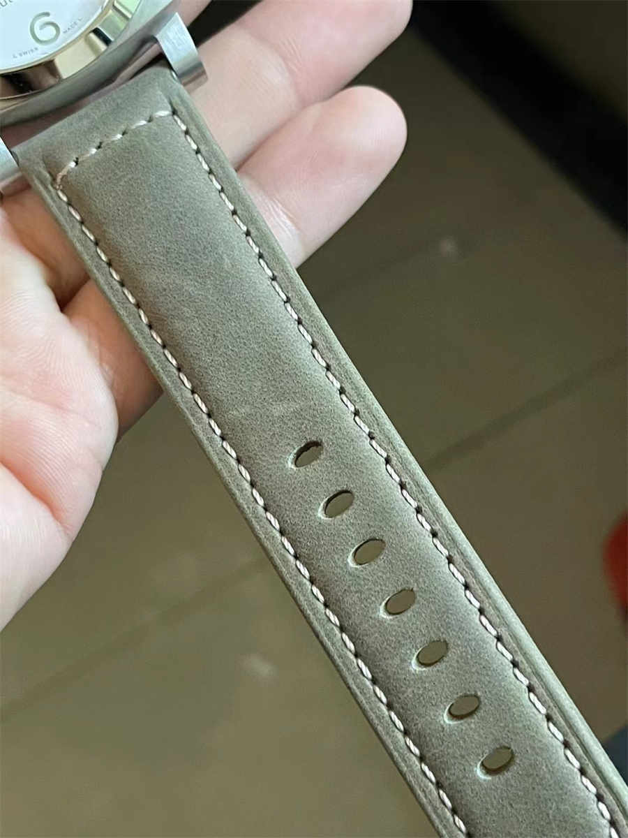 The watch is paired with a soft leather strap that complements the crisp tone of the dial. The buckle is sturdy and easy to adjust, and the strap works well for both casual and slightly formal settings. As with most Panerai models, the strap can be easily swapped for rubber or canvas alternatives.