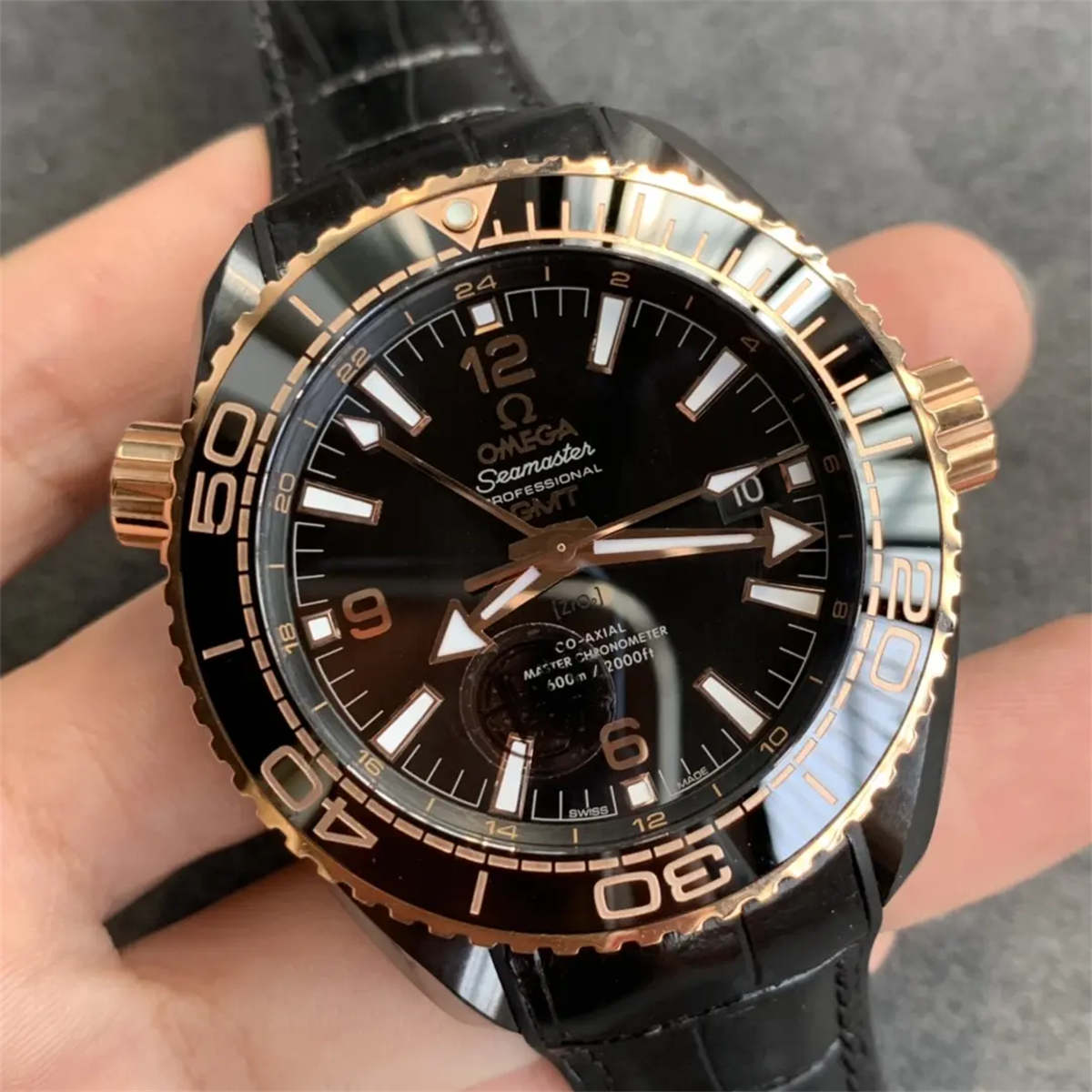 The VSF Planet Ocean Seamaster Omega watches collection has gained massive global popularity for its impressive accuracy, durable construction, and faithful reproduction of the original Omega design standards. This Deep Black Rose Gold 600M version represents the latest upgrade from VS Factory—combining a full ceramic case with beautifully executed rose-gold accents for a bold, luxurious aesthetic.
