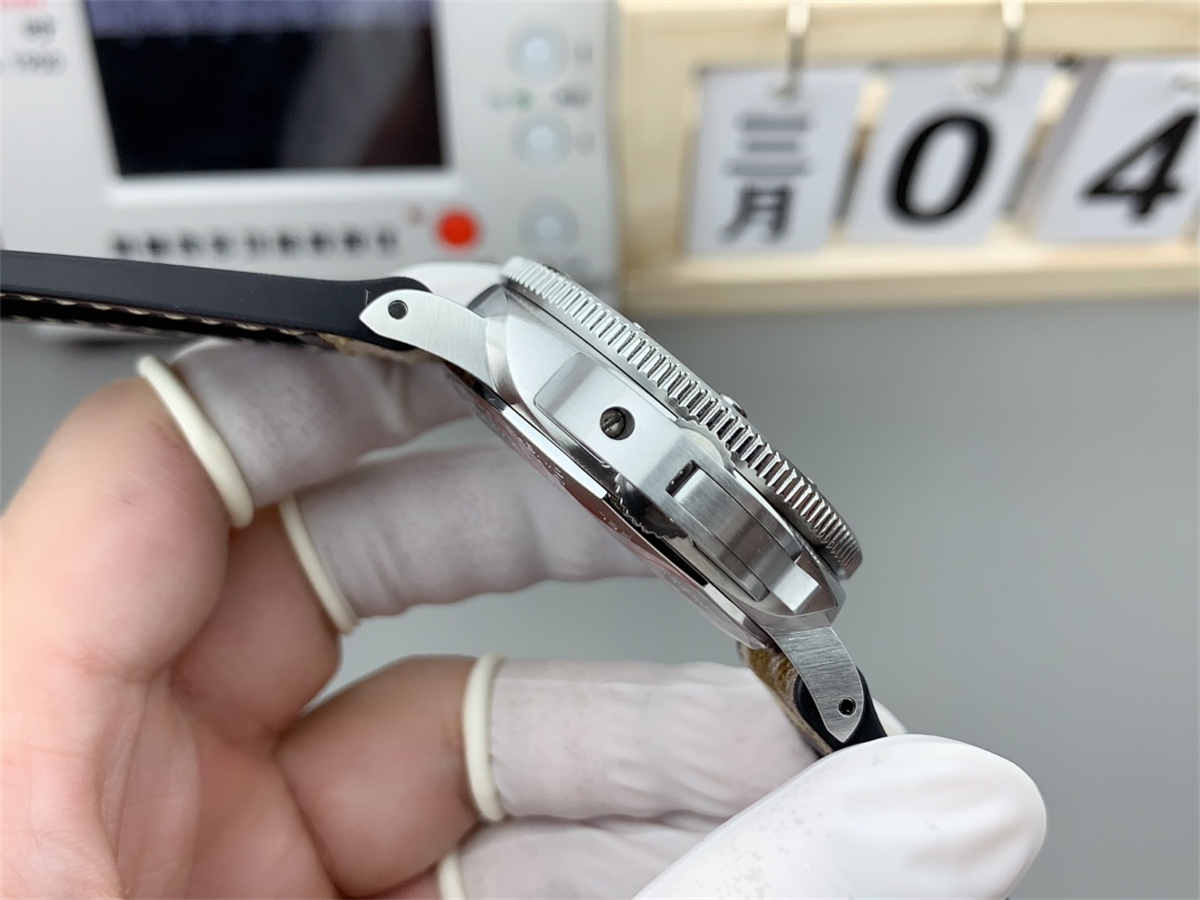 The VSF Watches Panerai PAM1518 features a 44mm solid stainless-steel case, crafted with a brushed finishing similar to the genuine model. The trademark Panerai crown-guard bridge is precisely sculpted, achieving perfect alignment and smooth locking action.