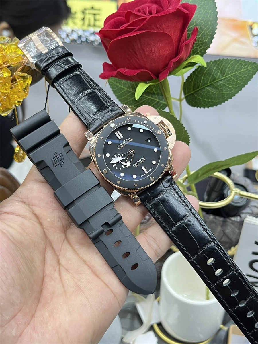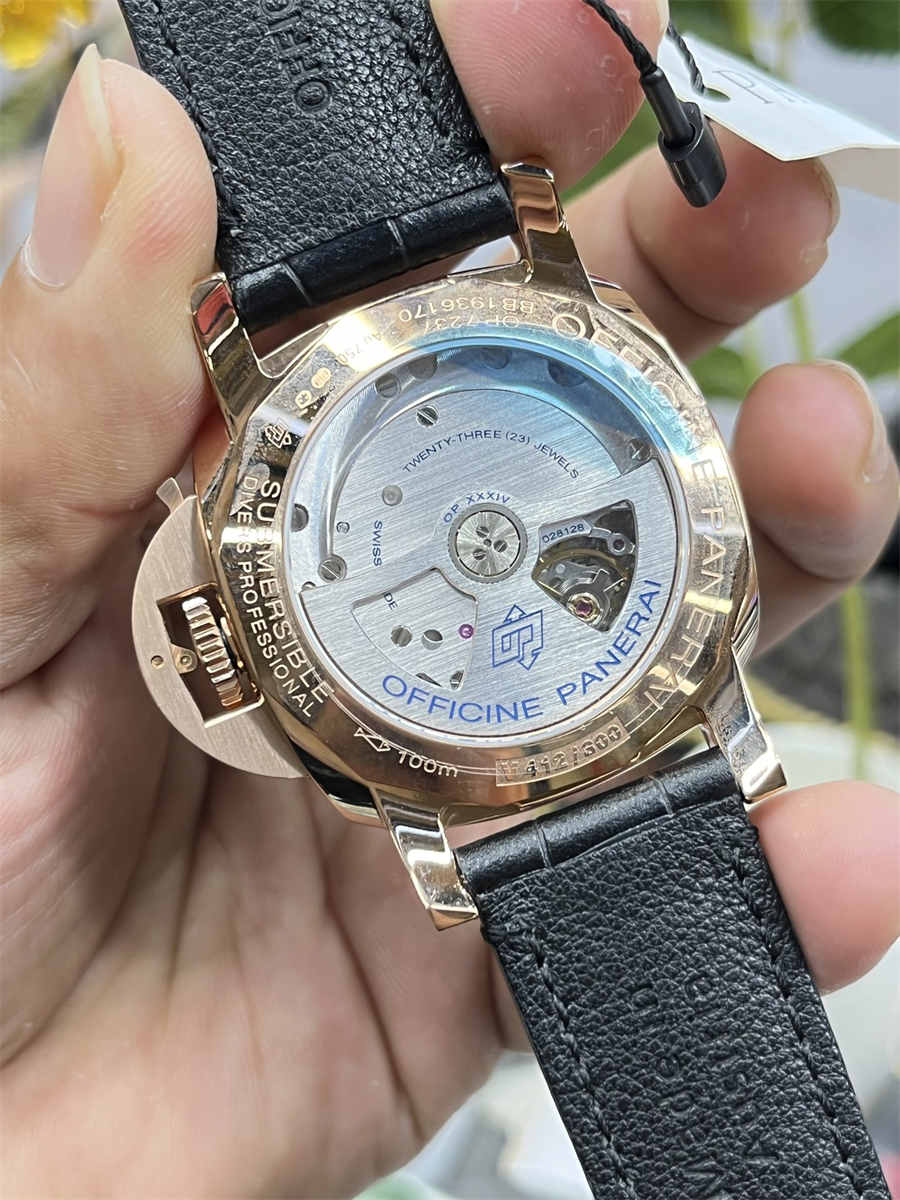 The PAM974 features a 42mm GoldTech-toned case, designed to emulate the iconic rose gold of the original.