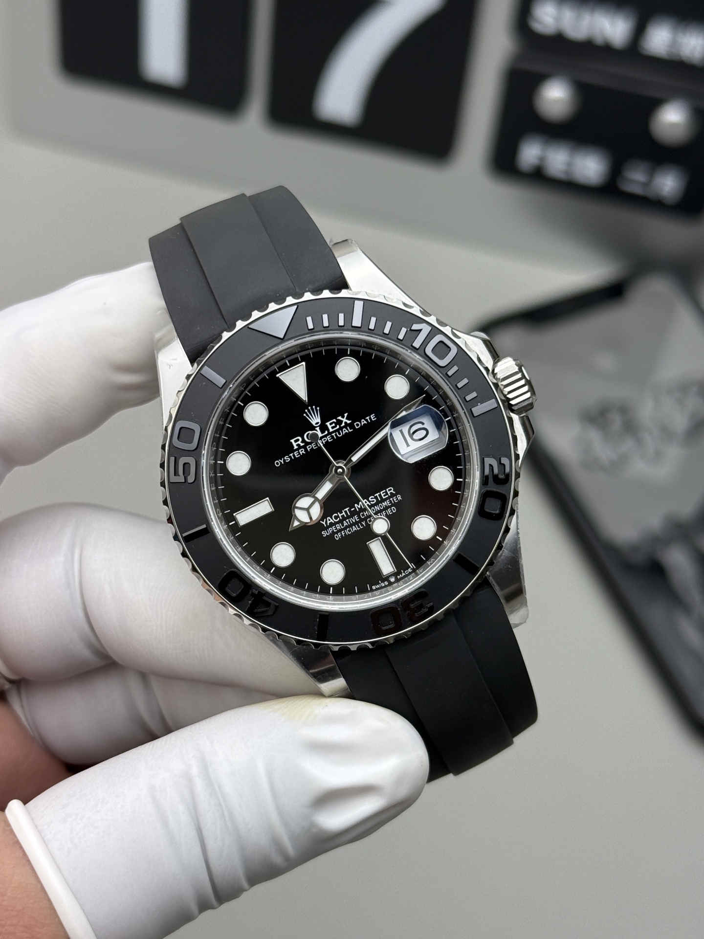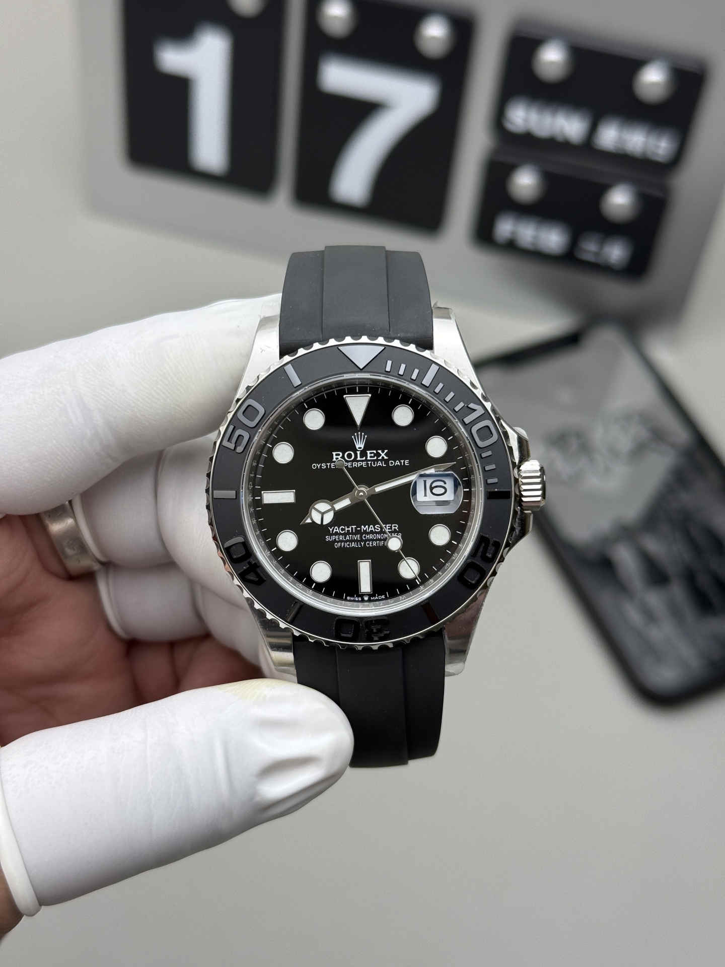 The genuine Yacht-Master 42 is known for its ultra-comfortable Oysterflex band — and Clean Factory perfectly replicates it.